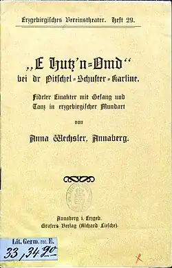 - In dr Hutznstub'. Ein Heimatbild aus dem Erzgebirge (= Erzgebirgisches Vereinstheater, Heft 21), Graser, Annaberg 1911. DNB 36302249X