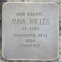 - ↑ a b Wieler, Anna. In: Gedenkbuch Opfer der Verfolgung der Juden unter der nationalsozialistischen Gewaltherrschaft in Deutschland 1933–1945, auf: bundesarchiv.de.