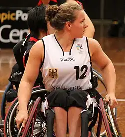 Ein Freund gewann sie für Rollstuhlbasketball.[6] Sie spielte für den SKV Ravensburg und Sabres Ulm in der deutschen Rollstuhlbasketball-Liga. Ab Dezember 2012 spielte sie außerdem für den RSV Lahn-Dill.[7] Mit der Nationalmannschaft gewann sie 2011 Gold bei der Europameisterschaft in Nazareth, wo die Mannschaft die Niederlande im Endspiel mit 48:42 besiegte.[8] Bei den Sommer-Paralympics 2012 in London gewann die Mannschaft Gold durch einen Sieg über Australien 44:58 vor über 12.000 Zuschauern in der North Greenwich Arena.[9] Es war der erste Sieg einer deutschen Mannschaft in der Disziplin seit 28 Jahren.[10][11] Nach den Spielen in London zeichnete Bundespräsident Joachim Gauck das Team im November 2012 mit Deutschlands höchster Ehrung im Sport, dem Silbernen Lorbeerblatt, aus.[12] Der Oberbürgermeister von Ulm, Ivo Gönner, gratulierte zu dem Erfolg, und sie trug sich ins Goldene Buch der Stadt ein.[13]