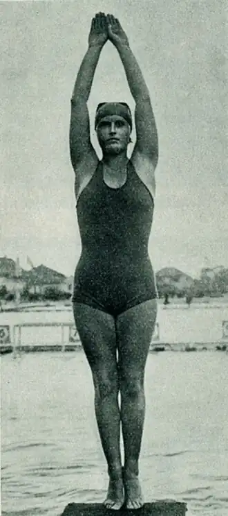 - ↑ Kunst- und Turmspringen. In: Propaganda-Ausschuß für die Olympischen Spiele Berlin 1936. Amt für Sportwerbung (Hrsg.): Wasserball und Wasserspringen (= Olympia-Heft). Nr. 20. H. A. Braun & Co., Berlin 1936, S. 17 (online [PDF]).