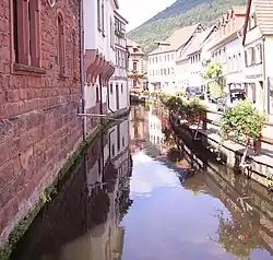 Die Stadt wird von West nach Ost von der Queich durchflossen, einem linken Nebenfluss des Rheins, in den im Stadtgebiet mehrere Nebenbäche münden, darunter der Rimbach, der Ebersbach, der Klingelbach, der Bindersbach und der Trifelsbach, alle von rechts. Komplett auf Gemarkung der Stadt befinden sich der Hahnenbach und der anderthalb Kilometer lange Eisbach, der durch Zusammenfluss von Dernbach und Eußerbach entsteht, beides sind linke Zuflüsse. Der Hahnenbach nimmt vor seiner Mündung von rechts nacheinander den Ortsgraben, den Oberen sowie den Unteren Hasenbach auf.