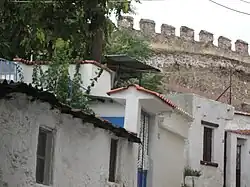 Weiter zu erwähnen sind die kleinen einstöckigen Häuschen (griechisch Καστρόπληκτα kastroplikta) der kleinasiatischen Flüchtlinge, mindestens 300 an der Zahl, die direkt an die byzantinische Stadtmauer angebaut wurden. Seit Ano Poli 1979 durch ein Dekret des Präsidenten zu einem traditionellen Stadtviertel (griechisch παραδοσιακός οικισμός paradosiakos oikismos) erklärt wurde und erst recht seit es 1997 Kulturhauptstadt Europas war, verfolgen Staat und Stadt das Ziel, die Häuschen zu beseitigen und die denkmalgeschützte Mauer freizulegen, stoßen dabei jedoch wiederholt auf Widerstand.[1]