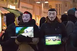 Obwohl die Aktivisten Guy-Fawkes-Masken verwenden, stehen sie in keiner Verbindung zur Hacktivist-Gruppe Anonymous.