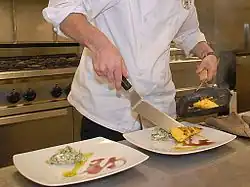 Als Anrichten bezeichnet man das Zusammenstellen von Speisen und Speisekomponenten (z. B. Beilagen) auf Essgeschirr zu vollwertigen Gerichten. Zum Anrichten gehört das Portionieren von Speisemengen, das Tranchieren von Fleisch und Fisch, das „Anordnen“ der einzelnen Elemente und das Garnieren.