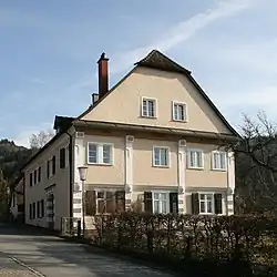 Das nordseitige Rechteckportal mit seiner rustizierten Pilasterrahmung und der dorischen Attika stammt aus dieser Zeit. Das Kehlgesims ist mit Rankenmalereien versehen. Die bei einem Brand 1975 teilweise zerstörte gotische Stube vom Beginn des 16. Jahrhunderts im Obergeschoß war ursprünglich vollständig vertäfelt und mit einer Holztonne gedeckt. Die zerstörten Teile wurden durch Kopien ersetzt. Die Deckentrame und die Fenstergewände sind reich geschnitzt bzw. profiliert. Bemerkenswert ist die Kielbogentüre in einem Stabwerkrahmen. In den Füllungszwickeln sind Rankenschnitzereien angebracht.