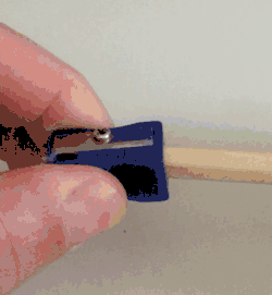 Während früher die Blei- und Buntstifte mit einem Messer angespitzt wurden, wird in einem Spitzer durch eine scharfe, am Gehäuse festgeschraubte, bis zu zwei Zentimeter lange, schmale Klinge die Holzhaut des Stiftes fein und gleichmäßig abgeschnitten. Dabei wird der Stift mit einer Hand gedreht und der Spitzer mit der anderen festgehalten. Die Mine wird dabei gleichzeitig gespitzt.