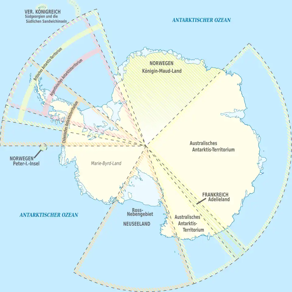 Antarktika ist kein eigener Staat. Verschiedene Nationen haben Gebietsansprüche erhoben, die sich zum Teil überschneiden. Derzeit erheben sieben Nationen Ansprüche auf acht Territorien in Antarktika: