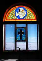 Es gibt seit 1956 Sakralbauten in der Antarktis. Der mittlerweile von einem russisch-orthodoxen Kreuz überragte Friedhof der Buromski-Insel gehört mit über 60 bestatteten Menschen zu den geschützten Antarktisdenkmälern.[38]