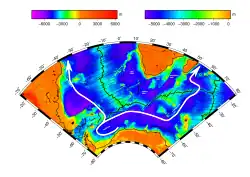 Der Vema-Kanal ⊙, ein Tiefseegraben im Rio-Grande-Rücken des Südatlantik, ist ein wichtiger Abfluss für AABW und Weddell Sea Bottom Water auf dem Weg nach Norden.[8]