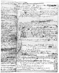 Nicht für die Öffentlichkeit bestimmt waren Notizbücher mit oft datierten handschriftlichen Eintragungen, die größtenteils aus der Zeit der Aufenthalte in Rotterdam 1698/1699 und 1703 stammen, aber bis 1712 fortgesetzt wurden. Sie sind erhalten geblieben und wurden im Jahr 1900 erstmals ediert. In den zwei Bänden mit dem griechischen Titel Askemata (Übungen) reihte der Philosoph Fragen und Anweisungen an sich selbst, Überlegungen, Zitate und Auszüge aneinander.[42]