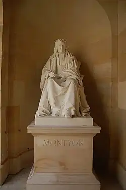 Antoine Jean Baptiste Robert Auget de Montyon (geboren am 23. Dezember 1733 in Paris; gestorben am 29. Dezember 1820 ebenda) war ein französischer Ökonom, Jurist, Staatsrat und Philanthrop. Er schrieb eine Reihe von Werken, vor allem über Wirtschafts- und Sozialpolitik. Den größten Teil seines großen Vermögens widmete er Werken der Wohltätigkeit und der Förderung der Wissenschaft.[1]