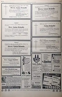 - ↑ a b Gernot Römer: Anton Brändle. »Wie Hitler wünschen Mütter sich den Sohn …« In: Gernot Römer: Es gibt immer zwei Möglichkeiten: Mitkämpfer, Mitläufer und Gegner Hitlers am Beispiel Schwabens. Augsburg 2000, Wißner-Verlag, ISBN 3-89639-217-4, S. 92.