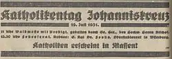 Am 19. Juli 1931 trat Anton Foohs noch einmal als Festredner beim Katholikentag der Diözese Speyer, in seiner früheren Pfarrei Johanniskreuz auf. Er hielt dort eine Rede zum 40. Todestag Ludwig Windthorsts, mit dem Titel: „Windthorst und unsere Zeit“. Es sollte der letzte dieser Katholikentage vor dem Zweiten Weltkrieg sein. 1932 fiel er aus, wegen einer am selben Tag stattfindenden Großveranstaltung der Zentrumspartei in Ludwigshafen am Rhein, bei der Reichskanzler Heinrich Brüning sprach; ab 1933 konnten die Diözesan-Katholikentage nicht mehr stattfinden.