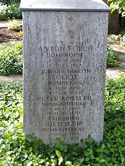 Speyer Domkapitelsfriedhof, Grabstele für die frühen Domherren der neuen Diözese, darauf auch Gedenkinschrift für Anton Forch
