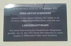 - ↑ Christian Artner: Neudörfl: Gedenktafel zu Ehren von Anton Schreiner enthüllt. In: bvz.at. 13. Oktober 2023, abgerufen am 14. Oktober 2023.