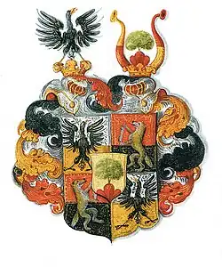 Ehemals gestürztes Wappen auf Schotts Epitaph