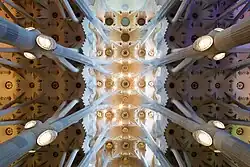 Gaudí verwendete für die Konstruktion der tragenden Strukturen häufig das Prinzip der Hängemodelle. Durch dieses Prinzip konnte er auch komplizierte Formen ohne aufwendige Berechnungen mit einem minimalen Materialeinsatz realisieren, da in den Gewölben nur Druckkräfte auftreten. Diese Bauform wird auch als katalanisches Gewölbe bezeichnet. Die von Gaudí verwendeten Bögen basieren auf dem Prinzip einer auf den Kopf gestellten Kettenlinie (Katenoide), die für die Turmbauten als Rotationskatenoid ausgeführt sind und einem elliptischen oder in sattelförmigen Gewölben einem hyperbolischen Paraboloid ähneln.[8][9]