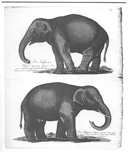 Zu den insgesamt 27 Tieren in Alpis Wandermenagerie gehörten zwei indische Elefanten aus Bengalen, ein Bulle und eine Kuh. Verschiedene Quellen berichten über deren Aufenthalt in Schönbrunn. So wurde das Elefantenpaar bei seiner Ankunft 1799 als zwar kostspielig, aber auch anziehend für zahlende Besucher vermerkt. 1805 wurde berichtet, dass die beiden Dickhäuter an der Musik Wohlgefallen fänden und Wohlgerüche schätzten. Das bisweilen nicht sehr dezente Verhalten der gemeinhin als keusch angesehenen Elefanten wurde von den Wienern besonders aufmerksam zur Kenntnis genommen und verschaffte dem Paar anhaltende Beliebtheit. Der Bulle verendete 1811 im Alter von 18 Jahren nach einer Magenentzündung; er hatte eine große Zahl ihm zugeworfener Kupfermünzen verschlungen. Er verblieb ausgestopft im Zoologischen Museum, sein Skelett kam an die kaiserlich-königliche Tierarzneischule.[2] Die Kuh starb 1845; sie war 53 Jahre alt geworden.[3]