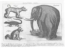 - ↑ Annelore Rieke-Müller, Lothar Dittrich: Unterwegs mit wilden Tieren. Wandermenagerien zwischen Belehrung und Kommerz 1750–1850 (1999), S. 29.