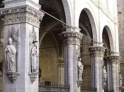 - Loggia della Mercanzia: Statuen der hl. San Pietro, San Savino, Sant’Ansano und San Vittore (zwischen 1451 und 1459 entstanden, der San Vittore befindet sich heute im Passeggio zu Santa Maria della Scala)