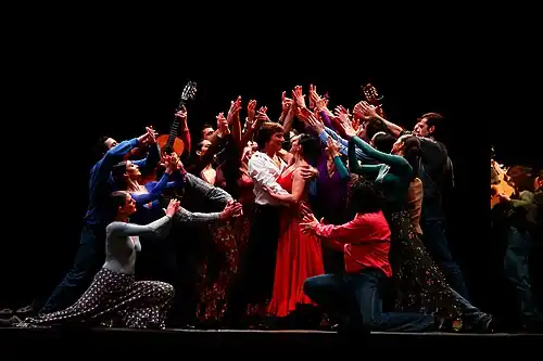 - ↑ Michael Eaude: Antonio Gades. Stunning Spanish dancer and choreographer. The Guardian, 22. Juli 2004, abgerufen am 5. Januar 2015 (englisch): „This „fusion“ of classical ballet and flamenco gave traditional Spanish dance the scale and technique of grand ballet.“