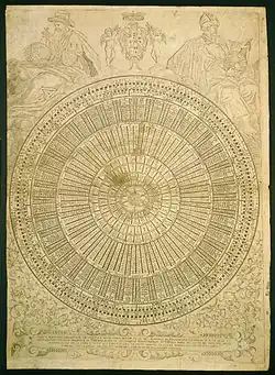 Das „ewige Rad“, ein Christine von Lothringen gewidmeter Stich, wird auf nach 1582 datiert und besteht aus fünf konzentrischen Kreisen, die es erlauben, für beliebige Tage des Jahres den Sonnenaufgang und die Mondphasen, sowie die beweglichen Feiertage, die Sonntagsbuchstaben, die goldenen Zahlen und die Epakten zu ermitteln. Im Zentrum ist eine Armillarsphäre abgebildet, oberhalb des Rades messen zwei männliche Figuren mittels eines Zirkels Abstände auf einem Himmelsglobus und einem Erdglobus.[1]