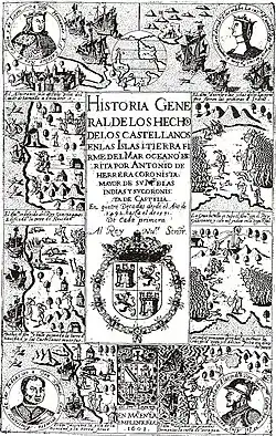 - ↑ Antonio de Herrera y Tordesillas: Historia General de los hechos de los castellanos en las Islas i tierra firme del Mar oceano. en la Emplenta Real, En Ma[drid] 1601 (jcyl.es [abgerufen am 22. Juli 2025]).