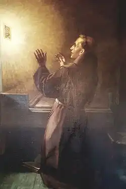 Vinzentius Schirley wurde 1647 in der Pfarrkirche St. Sixtus in Haltern getauft.[1] 1672 trat er im 20 km entfernten Dorsten in das dortige Franziskanerkloster ein, das zur Sächsischen Franziskanerprovinz (Saxonia) gehörte, und erhielt den Ordensnamen Antonius. Als persönliches Gebetbuch besaß er Das Himmlisch Palm-Gärtlein des Wilhelm Nakatenus, in dem sich ein als Muttergottes interpretiertes Frauenbild befand,[2] das im Text auf Gen 3,15 und auf Hld 4,7 bezogen wurde (heute in erster Linie auf Offb 12 ). Laut einem Bericht aus dem Jahr 1707 hörte Schirley im September 1680 vom Bild her eine Stimme mit der Aussage: „Bring mich nach dem Hardenberg, da will ich verehret sein“. Schirley verstand unter Hardenberg das seit kurzem im Bau befindliche Franziskanerkloster Hardenberg-Neviges in der Herrschaft Hardenberg unweit Schloss Hardenberg.