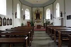 Den Altar schmückt ein Ölgemälde aus dem 18. Jahrhundert mit der Darstellung der Hubertuslegende. Im Chor befinden sich Skulpturen folgender Heiliger: Josef, Antonius, Stanislaus und Servatius. In der barocken Monstranz aus dem Jahr 1750 befindet sich eine Reliquie des hl. Antonius. Am Gedenktag, dem 17. Januar, wird die Antoniuskirmes im Ort gefeiert und die Gläubigen werden mit der Monstranz gesegnet.