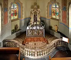 Ein Jugendstilgitter trennt die Empore vom Kirchenraum ab.