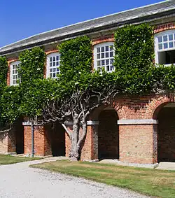 An der Westseite befindet sich ein formal angelegter Garten mit einem achteckigen Teich, ein von Eibenhecken umrahmter Knotengarten und Blumenrabatten sowie ein breiter, von Eibenzinnen gerahmter Rasenweg. Im Garten befinden sich von General Reginald Carew Pole im 19. Jahrhundert gesammelte Steinskulpturen aus Nordindien sowie eine burmesische Tempelglocke sowie moderne Skulpturen, darunter ein von William Pye gestalteter Bronzebrunnen, der die Form einer 10 m hohen, kegelförmig geschnittenen Eibe aufgreift.[3] Im Garten befinden sich zahlreiche Ziersträucher, exotische Bäume wie eine mächtige Korkeiche an der Südseite und einem Schwarznussbaum an der Nordseite des Herrenhauses sowie eine „National Collection“ von über 600 Tagliliensorten.