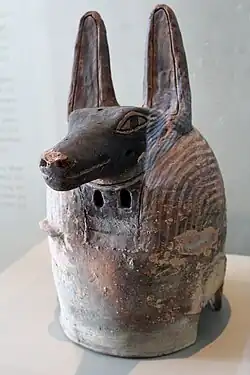 - Hans Kayser: Das Pelizaeus-Museum in Hildesheim. Cram / de Gruyter, Hamburg 1966, S. 31 und 70 (Abbildung 34. Tönerne Maske eines Totenpriesters in Gestalt des Hundekopfes des Gottes Anubis).