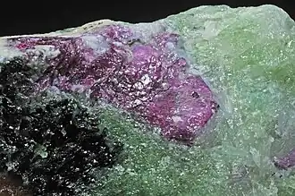 - ↑ Torsten Purle: Rubin-Zoisit – Eigenschaften, Entstehung und Verwendung. In: steine-und-minerale.de. Steine & Minerale, 5. November 2019, abgerufen am 27. Juli 2020.