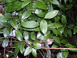 Die gegenständig angeordneten Laubblätter sind in Blattstiel und -spreite gegliedert. Der Blattstiel ist relativ kurz. Die ledrige Blattspreite ist einfach. Der Blattrand ist glatt oder gesägt. Die Nebenblätter sind klein oder fehlen.
