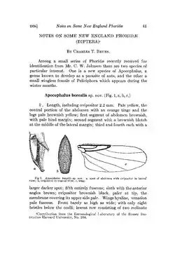 - ↑ C. T. Brues: Notes on Some New England Phoridæ (Diptera). In: Psyche: A Journal of Entomology. Vol. 31, 1924, S. 41–44, doi:10.1155/1924/42175.