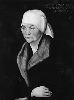 1491 heiratete sie den herzoglichen Amtmann und Rentmeister Georg von Wiedebach, einen der vermögendsten Männer Sachsens, der zu Ostern 1491 die herzogliche Rechnungsführung übernahm. Später war Wiedebach auch Burghauptmann der Pleißenburg in Leipzig. Nach dem Tod Wiedebachs 1524 fiel dessen Vermögen an Apollonia, die es für wohltätige Zwecke testamentarisch in Stiftungen einbrachte, die bis zum Anfang des zwanzigsten Jahrhunderts ausgeführt worden sind. Diese betrafen Krankenhäuser, arme Leute und auch die Stadt Leipzig für die Verbesserung der Straßen. Ihr Geld gab sie auch für die Finanzierung einer lutherischen Predigerstelle zu St. Thomas oder St. Nikolai, da sie Anhängerin und Befürworterin der Reformation war, obwohl ihr Gatte als Staatsbeamter katholisch gewesen war.