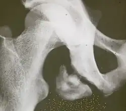 - ↑ Ferenc Kása et al.: Apophysennekrose der Tuberositas tibae (Schlatter-Osgood-Krankheit, engl. Osgood-Schlatter disease). In: P.F. Suter, B. Kohn (Hrsg.): Praktikum der Hundeklinik. 10. Auflage. Parey, 2006, ISBN 3-8304-4141-X, S. 969–970.