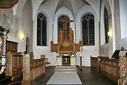 - Das Chorgestühl mit Flachschnitzereien ist mit 1548 bezeichnet.