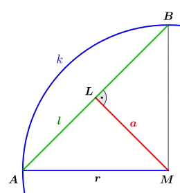 Ist der Kreisradius und die Länge der Kreissehne, dann gilt nach dem Satz des Pythagoras für das Apothemas