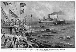Am Nachmittag des 15. Januar 1916 wurde die Appam 135 Seemeilen nordwestlich von Madeira von der Möve aufgebracht. Eine Prisenmannschaft ging an Bord des britischen Passagierdampfers und übernahm das Kommando. Am 1. Februar 1916 traf das Schiff unter der Führung des Leutnants Hans Berg in den Hampton Roads (US-Bundesstaat Virginia) ein. An Bord befanden sich 451 Menschen, darunter 155 Besatzungsmitglieder der Appam, alle 116 Passagiere, 20 der 22 deutschen Zivilisten, die 22-köpfige deutsche Prisenmannschaft sowie 138 gerettete Seeleute von anderen Schiffen, die von der Möve versenkt worden waren. Das Schicksal der Appam war vor dem Eintreffen in Virginia völlig unklar. Die New York Times berichtete in ihrer Ausgabe vom 29. Januar 1916, dass bereits befürchtet wurde, das Schiff sei gesunken.