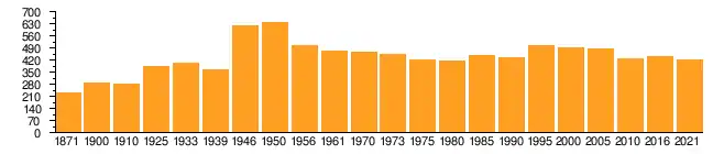 - ↑ Ausschuß der deutschen Statistiker für die Volks- und Berufszählung 1946: Volks- und Berufszählung vom 29. Oktober 1946 in den vier Besatzungszonen und Groß-Berlin. In: Duncker & Humblot (Hrsg.): Deutsches Gemeindeverzeichnis. Buchdruckerei und Verlagsanstalt Carl Gerber, München 5 1950, S. 35.