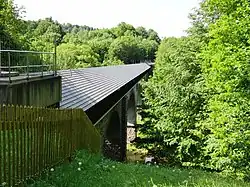 Das Aquädukt ist 140 m lang[1] und 18 m hoch. Es besteht aus einer fünfbogigen Brücke mit zwei großen und drei kleineren Bögen. Diese ist in Bruchsteinmauerwerk ausgeführt und mit einem hölzernen Aufbau mit Satteldach zum Schutz des Wassers versehen. Eine Besonderheit des technischen Denkmals ist, dass das zulaufende Wasser aus einem 420 m hoch, und damit 82 Meter über dem Aquädukt gelegenen Stollen herabfällt. Nach dem Taleinschnitt steigt das Wasser in den Druckleitungen wieder um 79 m zu einem weiteren Stollen auf. Obwohl er das Tal nicht gänzlich unterquert erfüllt er damit die Funktion eines Dükers.