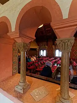 Dieser Sinterkalk wurde vermutlich erstmals für die von Karl dem Großen gebaute Pfalzkapelle Aachen verwendet.