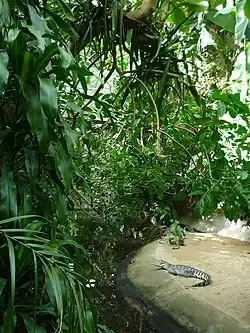 Bei der authentischen Bepflanzung sind jedoch Kompromisse unvermeidlich. Viele Fische fressen gerne weiche und feinstrukturierte Gewächse, Echsen zerstören mit ihren Krallen große, fleischige Blätter, dünne Zweige brechen unter dem Gewicht von Reptilien – in der freien Natur normale Vorgänge, in Aquarien und Terrarien nur begrenzt praktikabel. Andererseits erholen sich beschädigte Pflanzen im hauseigenen Gewächshaus oft so weit, dass sie in den Schauräumen wiederholt verwendet werden können. In der Krokodilhalle gibt es keine derartigen Probleme. Schäden an der Vegetation entstehen hier allenfalls durch Blattläuse und ähnliche Schadinsekten; da man sie nicht durch Chemikalien bekämpfen kann, werden mit Erfolg natürliche Feinde wie Brillenvögel und Geckos ausgesetzt.