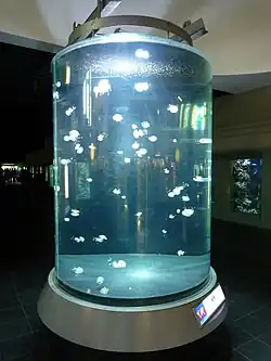 Verschiedene Quallenarten sind in Aquarien im Erdgeschoss zu sehen; besonderer Anziehungspunkt ist ein großes, freistehendes zylindrisches Becken mit Gepunkteten Wurzelmundquallen. Die wertvollsten Tiere im Zoo-Aquarium Berlin waren die Komodowarane, mit bis zu drei Meter Länge und 250 Kilogramm Gewicht sind sie die größten Echsen der Welt. Sie leben streng geschützt ausschließlich auf Komodo und drei weiteren indonesischen Inseln und dürfen das Land nur als Staatsgeschenk verlassen. Eine Besonderheit im Rahmen des Aquariums ist die Gruppe der seltenen neuseeländischen Brückenechsen, die oft als lebende Fossilien bezeichnet werden. Sie lebten schon vor 225 Millionen Jahren, damals auf der Erde weit verbreitet. Heute sind sie nur noch auf einigen zu Neuseeland gehörenden Inseln zu finden. Mit Rücksicht auf ihre Heimat in gemäßigtem Klima besitzt ihr Terrarium eine Kühlanlage – bei der Haltung von Reptilien eine ganz unübliche Einrichtung.
