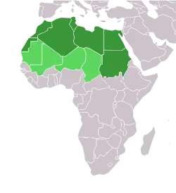 Die nordafrikanischen Staaten an der Atlantik- und der Mittelmeerküste, die nach der islamischen Eroberung des Maghreb im 7. und 8. Jahrhundert arabisiert wurden und noch mehr oder weniger starke Traditionen autochthoner Völker (Berber, Tuareg) aufweisen, sowie Länder in der zentralen bis westlichen Sahara:
