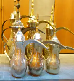 Für das Kochen, Würzen, Filtern und Ausschenken des Kaffees werden drei Bronzekannen (dilāl) unterschiedlicher Größe verwendet. Die größte ist die Kaffeekanne (dallat al-qahwa), die zum Kochen des Wassers dient. Sie wird auch al-Chamra genannt. In einer etwas kleineren Kanne, die Mulaqqima genannt wird, wird der Kaffee mit dem kochenden Wasser aufgebrüht und mit Safran, Muskat, Kardamom, Nelken und Rosenwasser gewürzt. Der lange schnabelartige Ausguss der Kanne wird mit einem kleinen Bündel aus Palmbaumfasern ausgefüllt und der fertige Kaffee damit schließlich in die kleinste Kanne gefiltert, die al-Mizalla genannt wird.