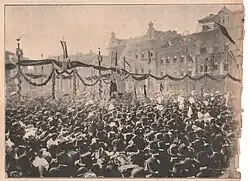 Die Anfänge der Dezemberereignisse des Jahres 1989 wurden in Arad schnell wahrgenommen. Am 20. Dezember versammelten sich zahlreiche Arader vor dem Rathaus als Zeichen der Solidarität mit den Demonstranten aus Timișoara.[9] Am 21. Dezember war Arad die zweite Stadt aus Rumänien, in der die kommunistische Führung gestürzt wurde.[6]