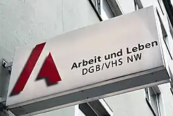 Arbeit und Leben DGB/VHS Nordrhein-Westfalen e. V. ist seit 1949 die Weiterbildungseinrichtung des Deutschen Gewerkschaftsbundes (DGB) und der Volkshochschulen (VHS) in Nordrhein-Westfalen. Die politische und inhaltliche Ausrichtung von Arbeit und Leben NRW orientiert sich an den Leitbildern und Arbeitsschwerpunkten seiner Träger – mit dem Anspruch diese in ihrer Arbeit zusammenzuführen und so eigene, neue Akzente zu setzen.[1] Die Weiterbildungseinrichtung ist Teil einer deutschlandweiten Struktur und pflegt vielseitige Kontakte in Europa und darüber hinaus.