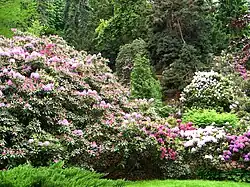Neben einer großen Sammlung aus Rhododendren gibt es eine Buchsbaumsammlung (Buxus) und eine Tagliliensammlung (Hemerocallis). Zudem findet man Schwertlilien, Pfingstrosen, Jasmin, Essig-Rosen und Anemonen. Zu den größten Sammlungen zählen u. a.: Hortensien (Hydrangea), Magnolien (Magnolia), Ginkgo (Ginkgo), Flieder (Syringa), Prachtspiere (Astilbe), Ziergräser, Chinaschilf (Miscanthus), Farne, Purpurglöckchen (Heuchera), Sonnenhüte (Echinacea), Funkien (Hosta), Ahornbäume (Acer), Birnenbäume (Pyrus), Kirschbäume, Lorbeerkirsche, Vogelkirsche, Mandelbäume, Zierkirschen und Ziermandeln (Prunus), Apfelbäume (Malus) und Hartriegel (Cornus).[6]